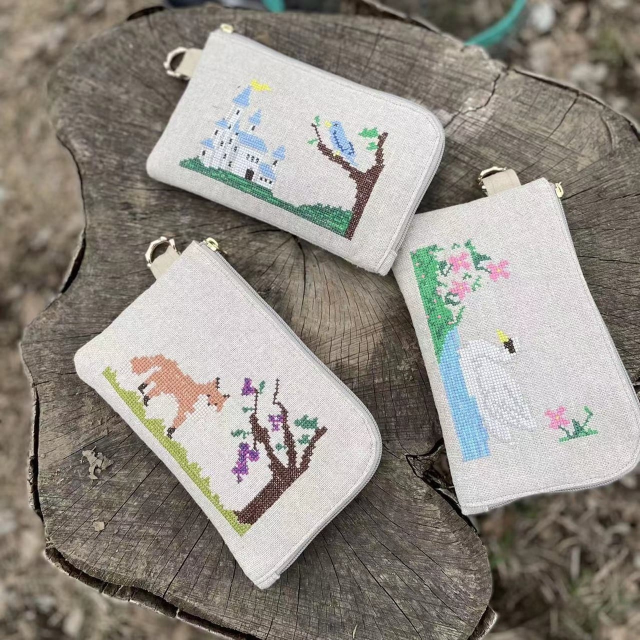 今回の刺繍は童話のワンシーンを思い浮かべた、三種類の動物モチーフです。